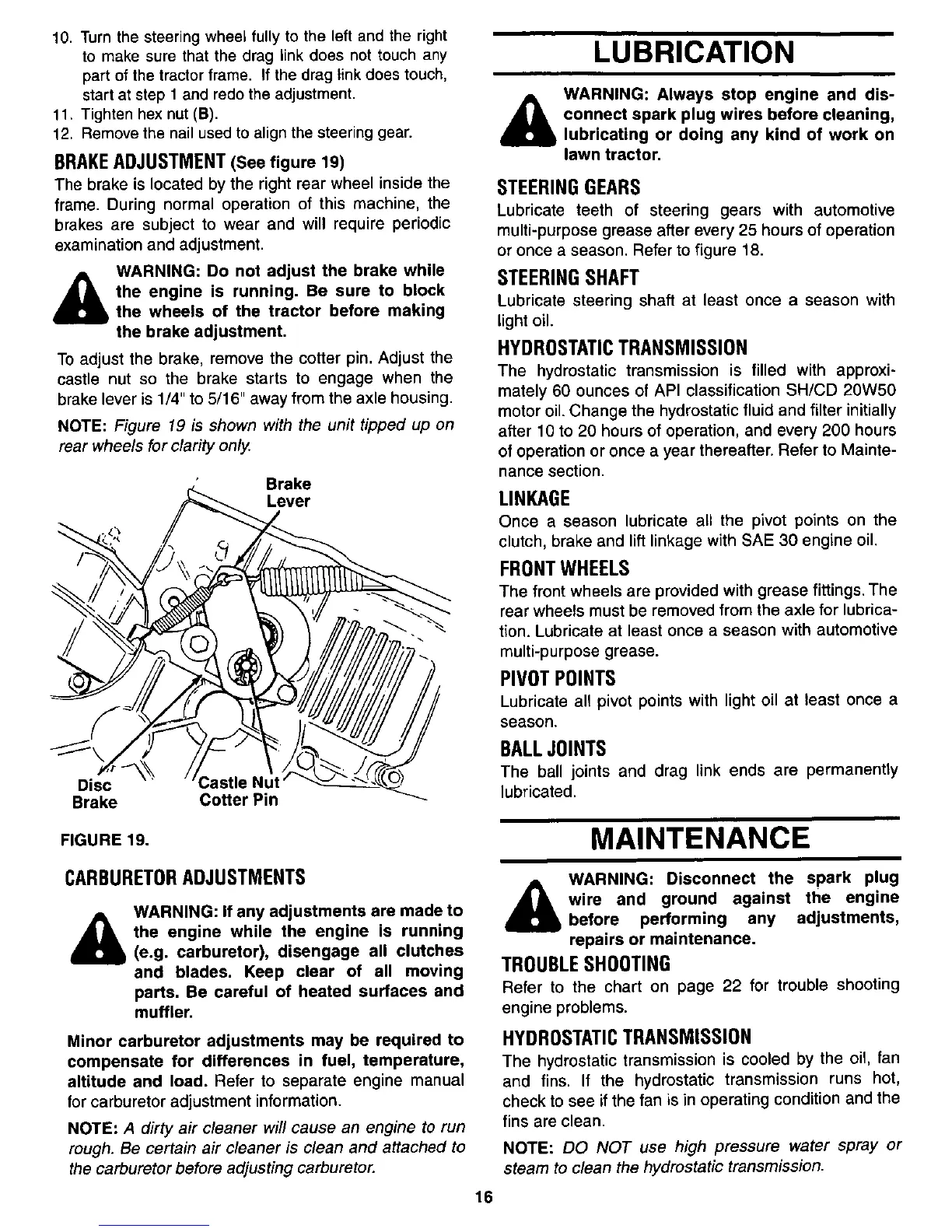 White 836 - Maintenance, Lubrication, and Troubleshooting; Brake, Carburetor, and Lubrication Procedures; General Maintenance and Troubleshooting