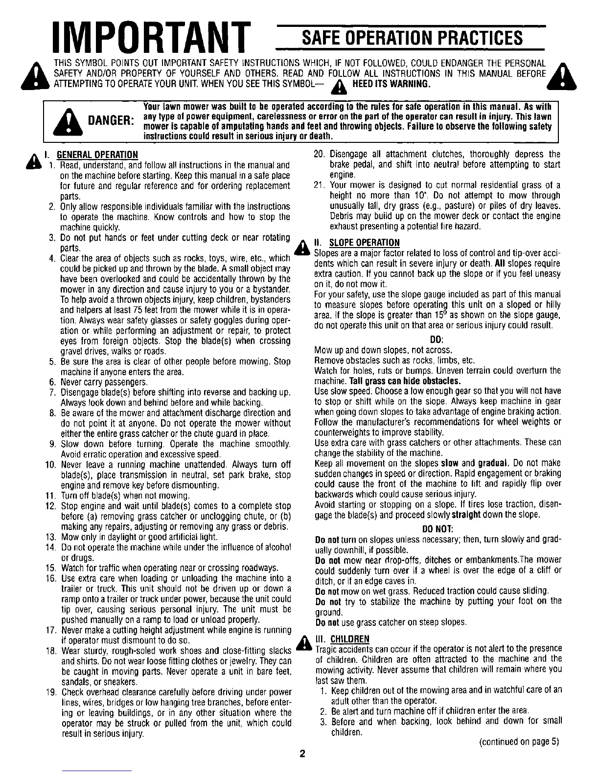 White 836 - Safe Operation Practices; General Operation, Slope, and Child Safety