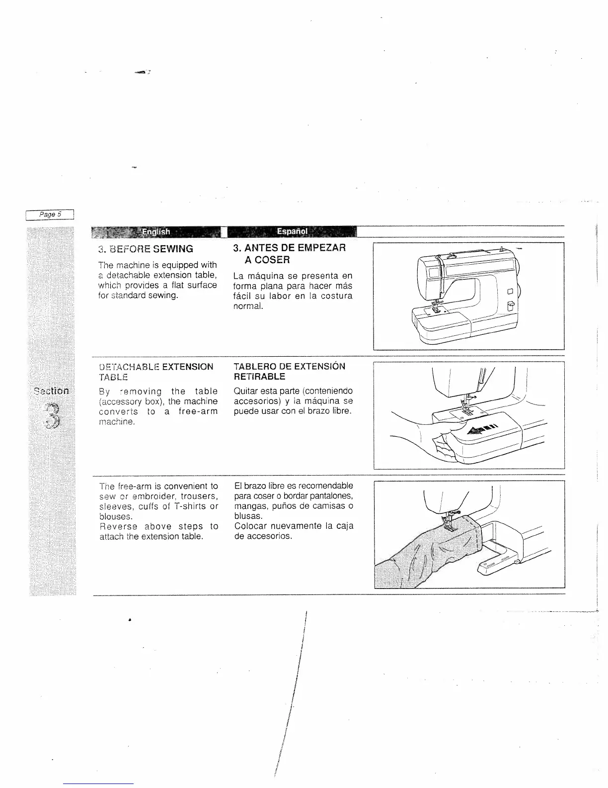 White 915 - BEFORE SEWING; DETACHABLE EXTENSION TABLE