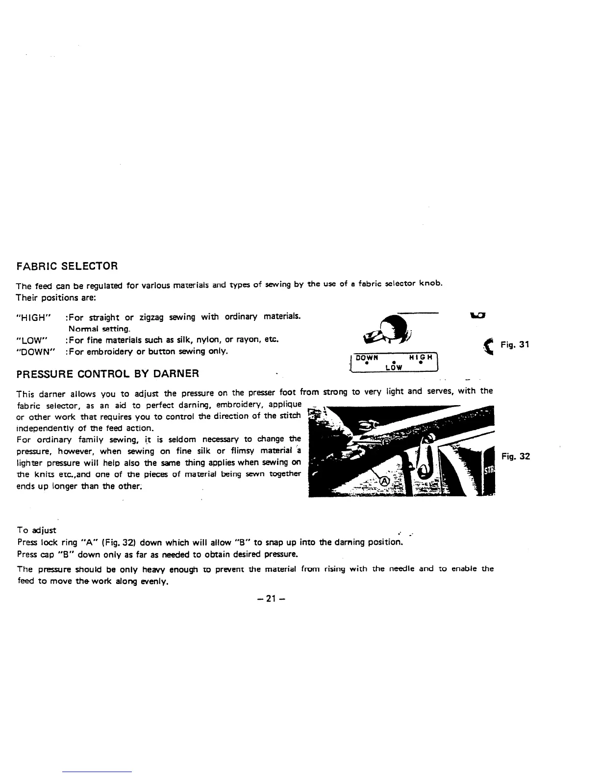 White 935 - Fabric Selector; Pressure Control by Darner