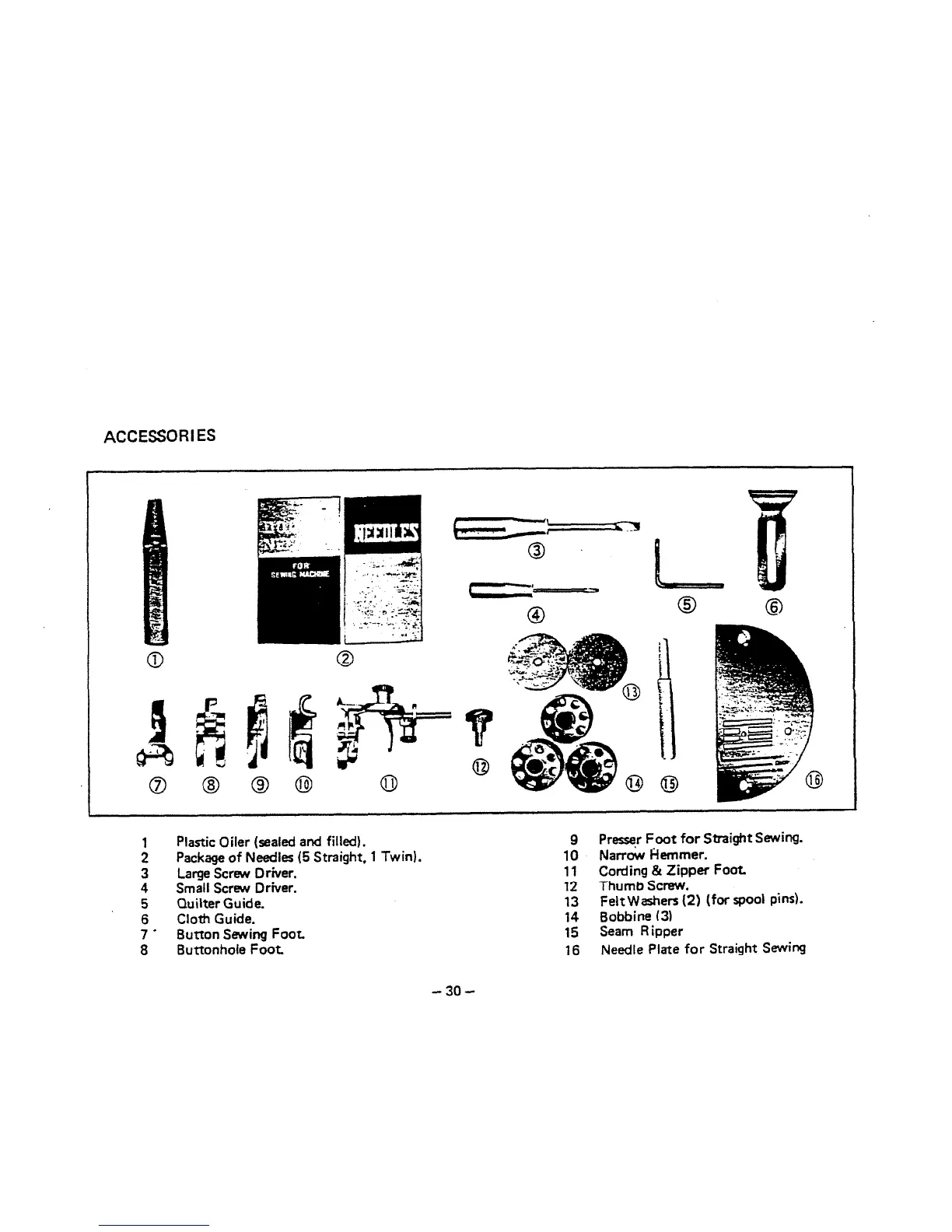 White 935 - ACCESSORIES AND ATTACHMENTS; Overview of Included Accessories
