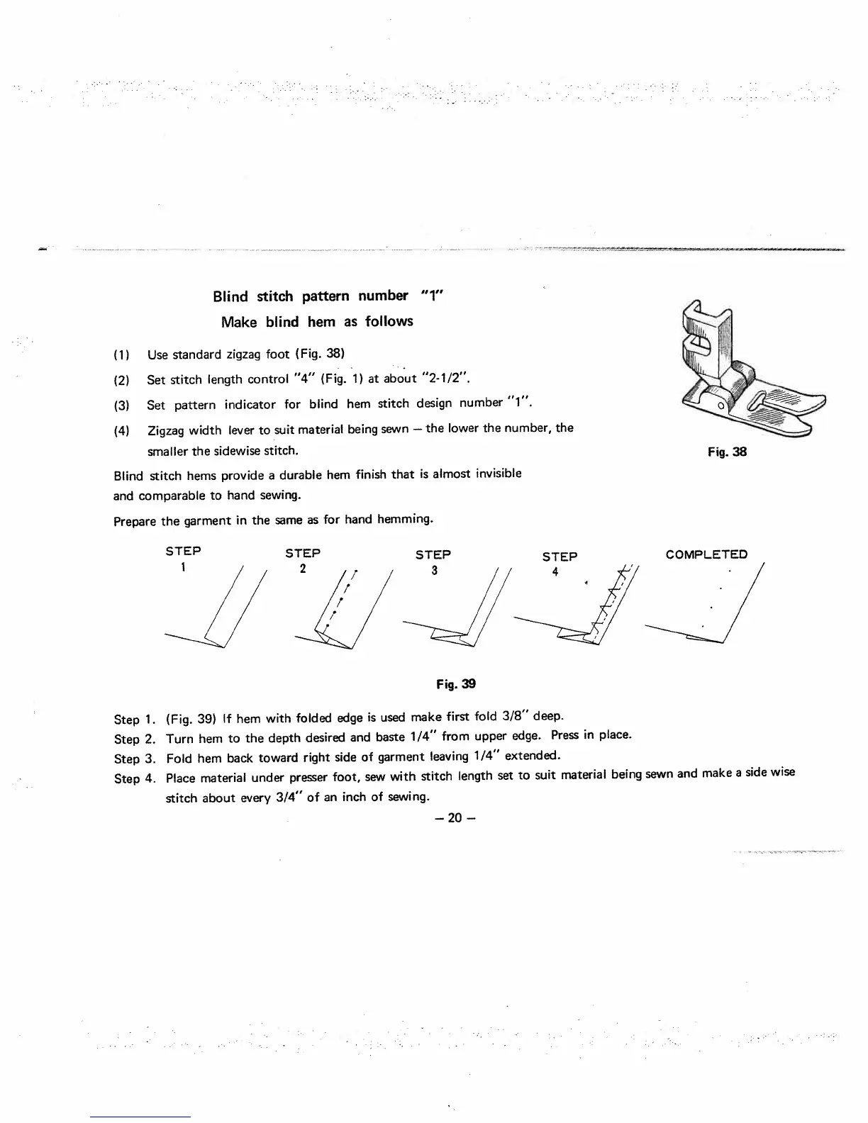 White 951 - Blind stitch pattern number 1 Make blind hem as follows
