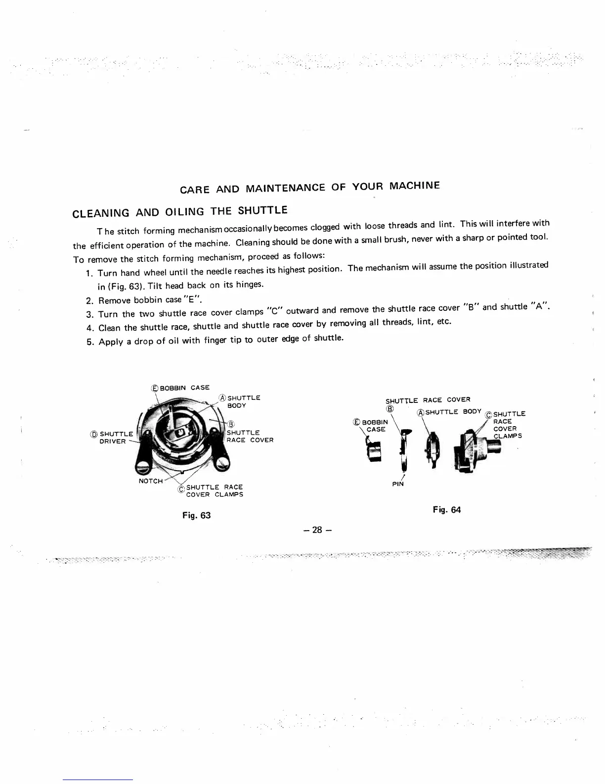 White 951 - CARE AND MAINTENANCE OF YOUR MACHINE; CLEANING AND OILING THE SHUTTLE