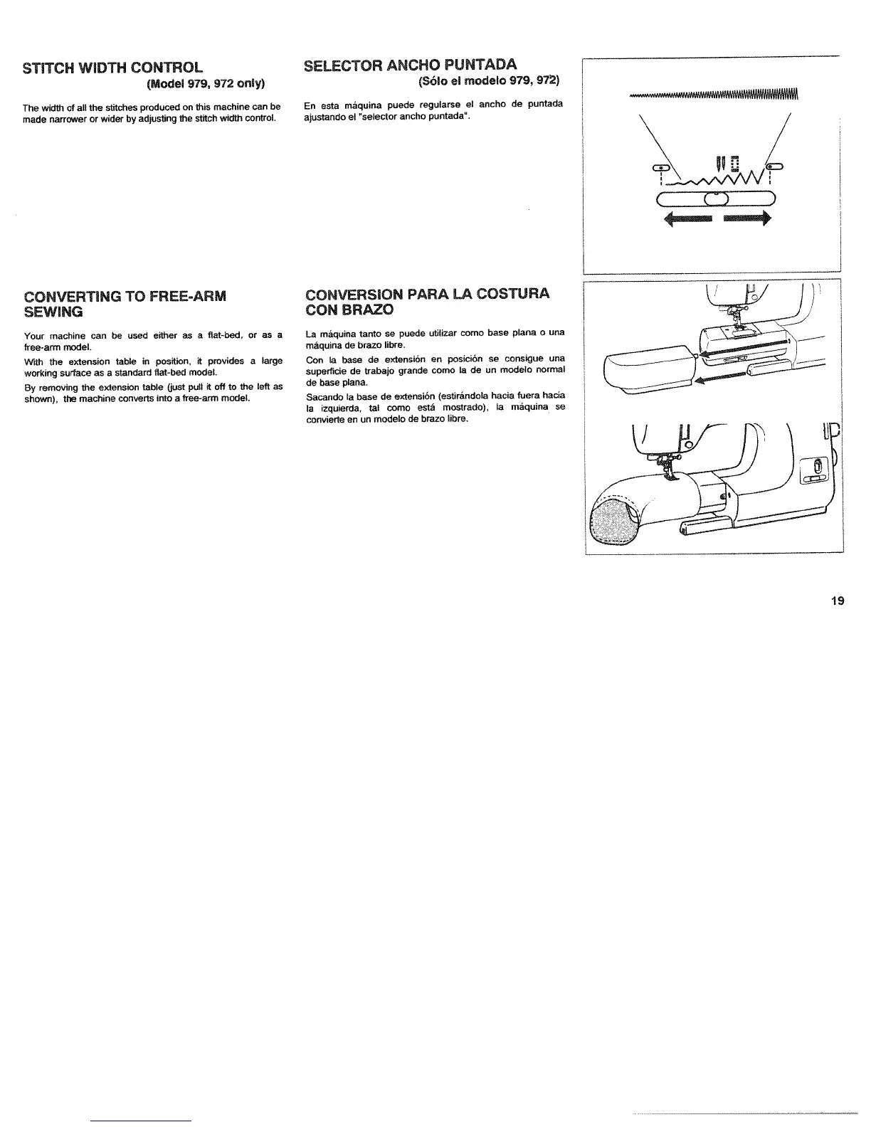White 970 - Stitch Width Control; Converting to Free-Arm Sewing