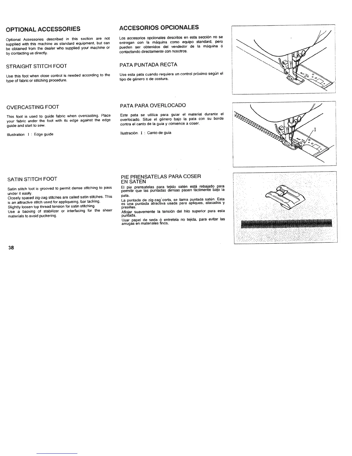 White 970 - Optional Accessories; Straight Stitch Foot; Overcasting Foot; Satin Stitch Foot