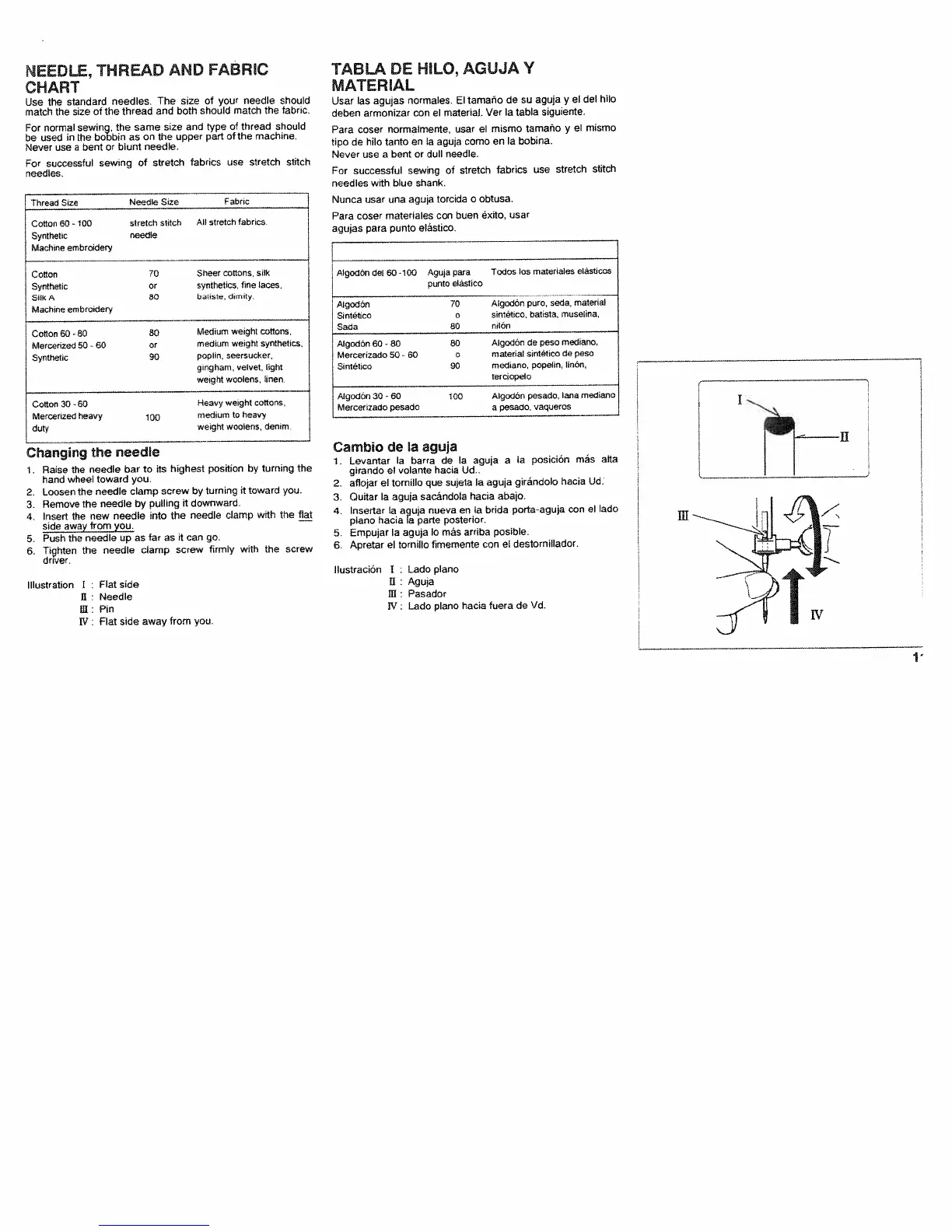 White 972 - Needle, Thread and Fabric Chart; Changing the needle