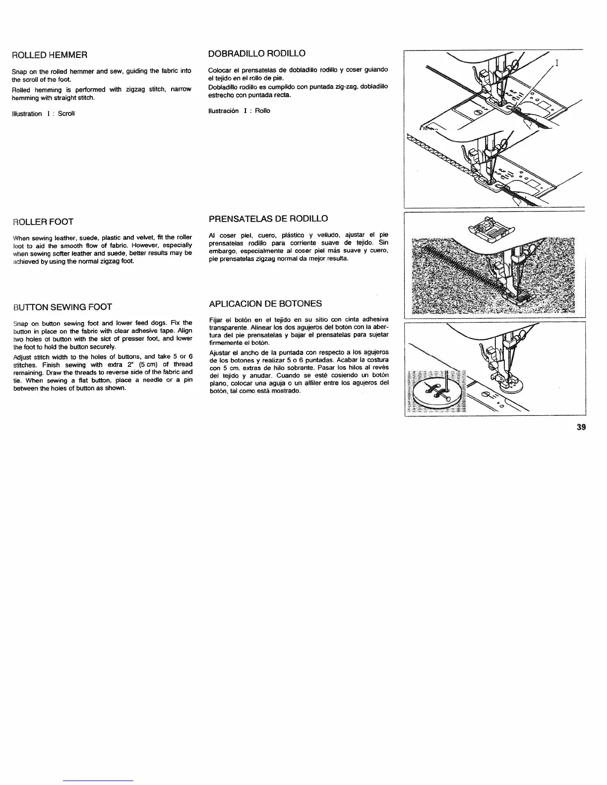 White 979 - Rolled Hemmer; Roller Foot; Button Sewing Foot