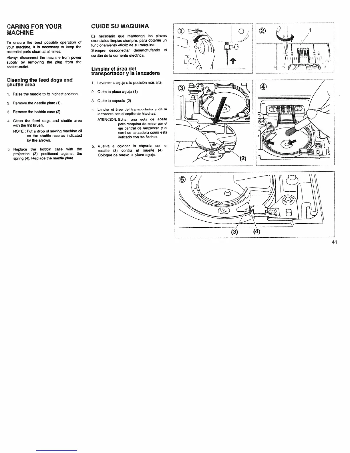 White 979 - Machine Care and Cleaning; General Machine Maintenance; Cleaning Feed Dogs and Shuttle Area