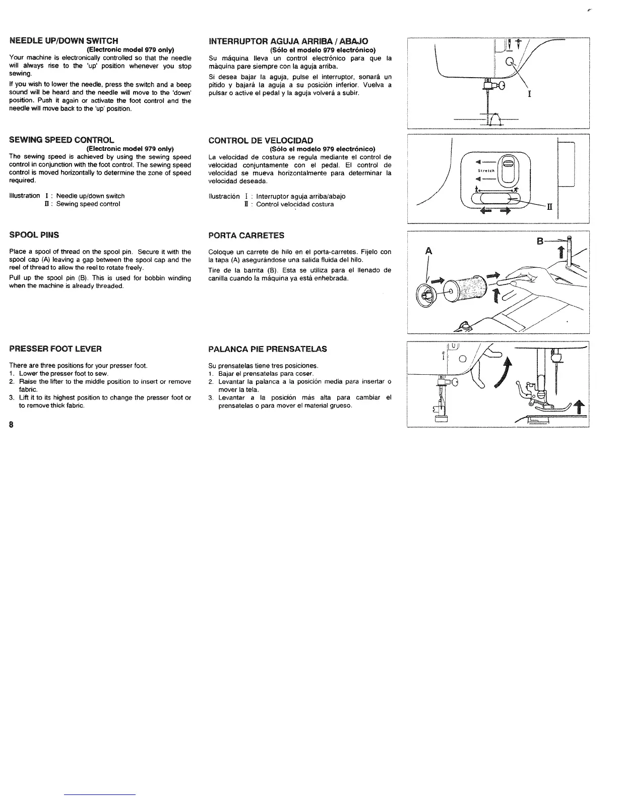 White 979 - Machine Controls and Adjustments; Needle Up;Down Switch; Sewing Speed Control