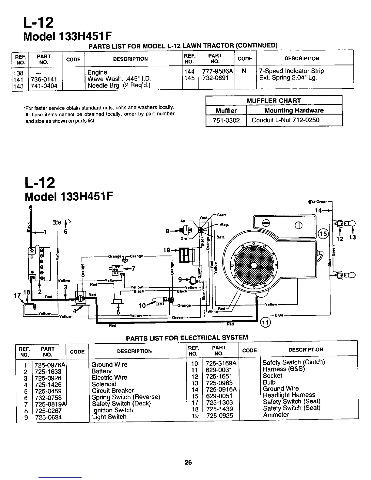 White L-12 - Parts List for Model L-12 133 H451 F Lawn Tractor; Parts List for Electrical System