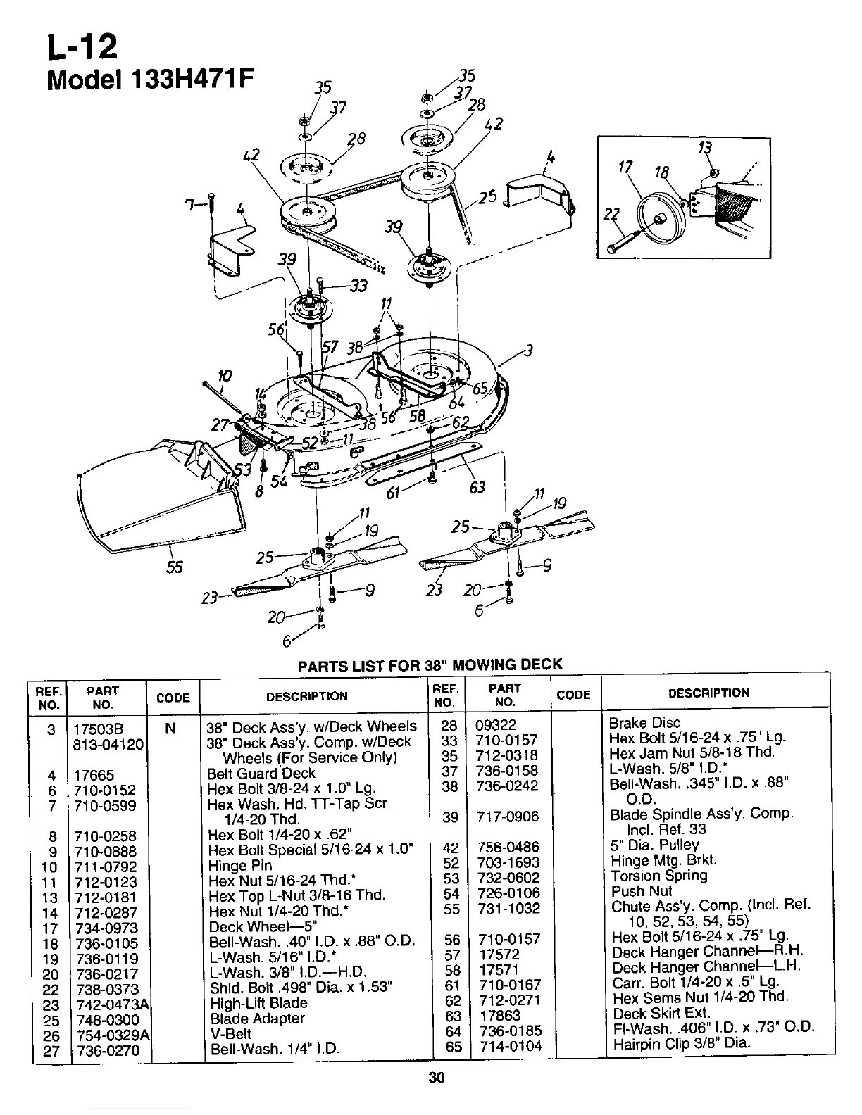 White L-12 - Parts List for 38 Mowing Deck
