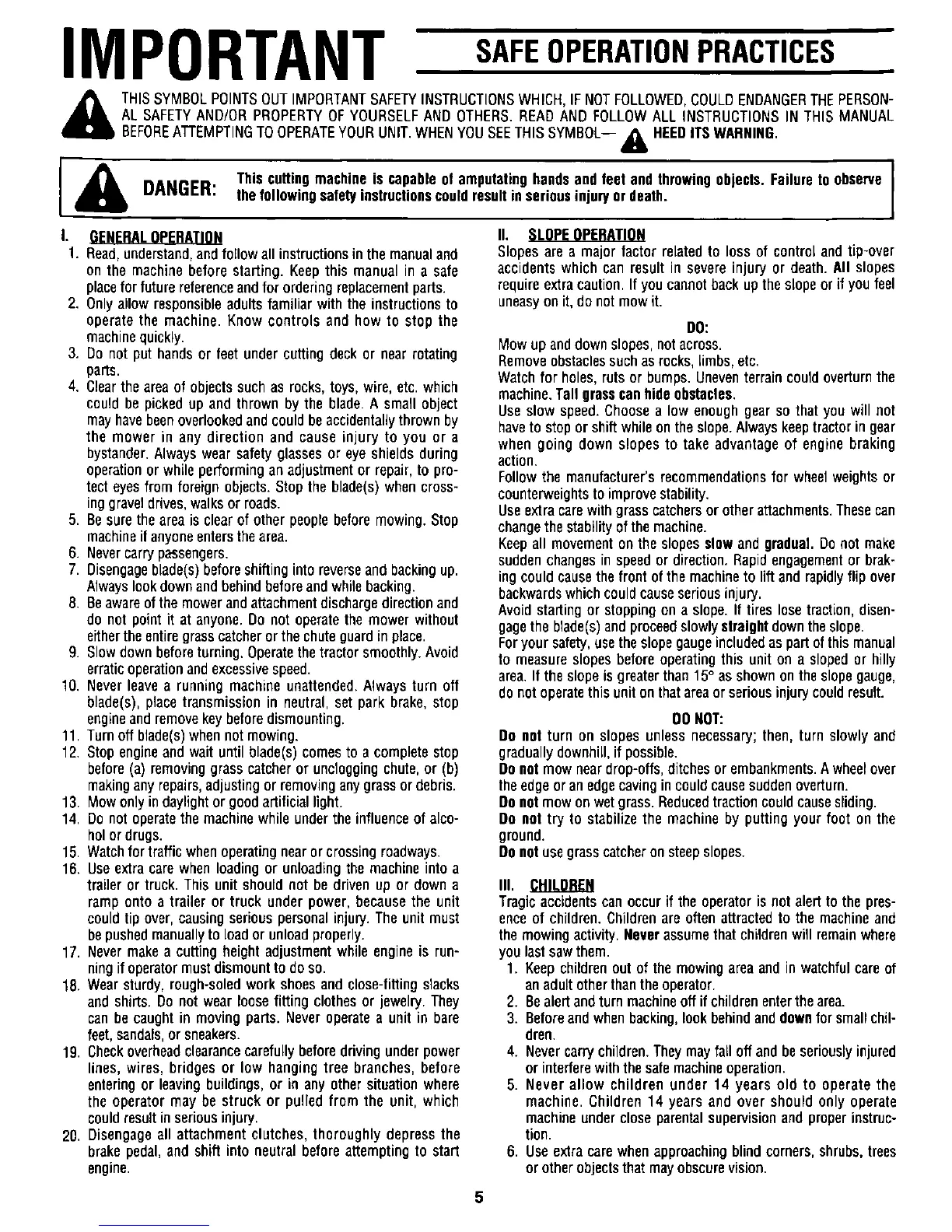 White L-12 - OPERATOR SAFETY GUIDELINES; GENERAL OPERATION SAFETY; SLOPE OPERATION SAFETY; CHILDREN SAFETY PRECAUTIONS