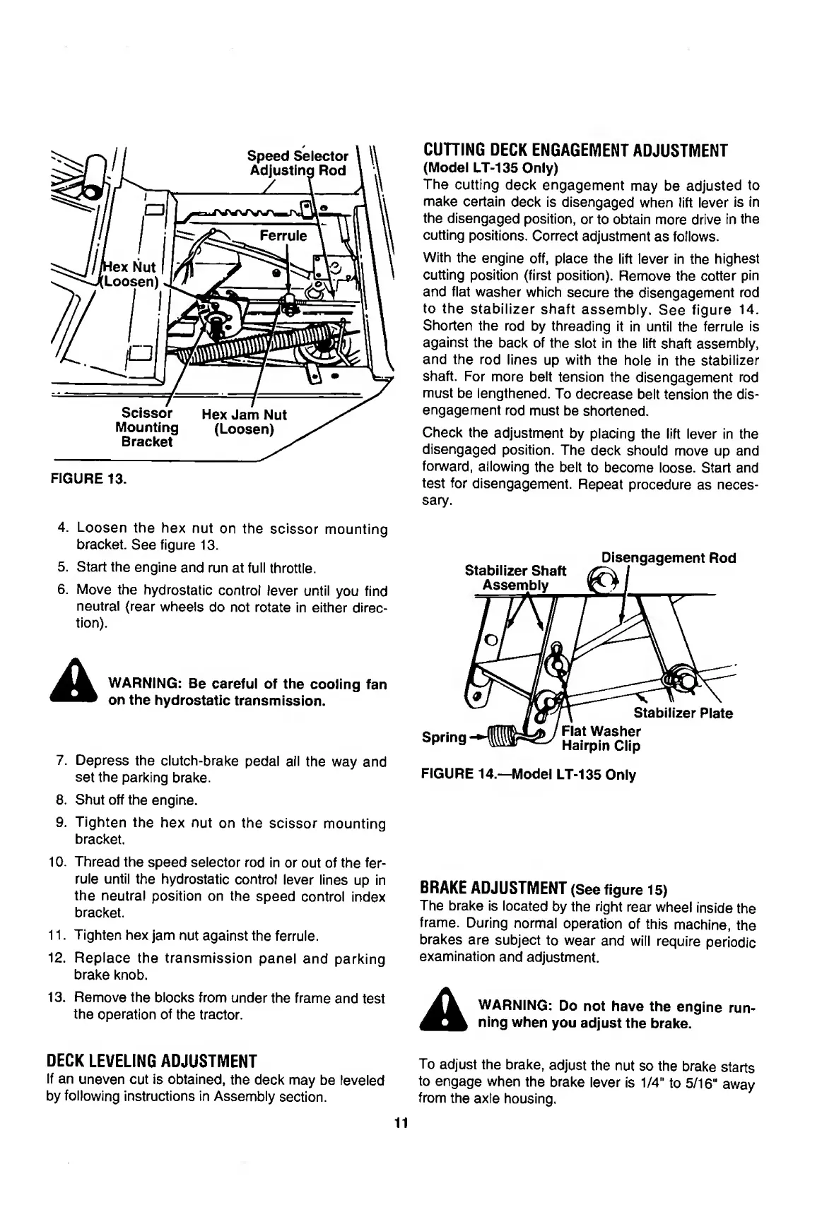 White LT-135 - Cutting Deck Engagement Adjustment (LT-135); Deck Engagement Adjustment; Brake Adjustment; Brake Adjustment Procedure