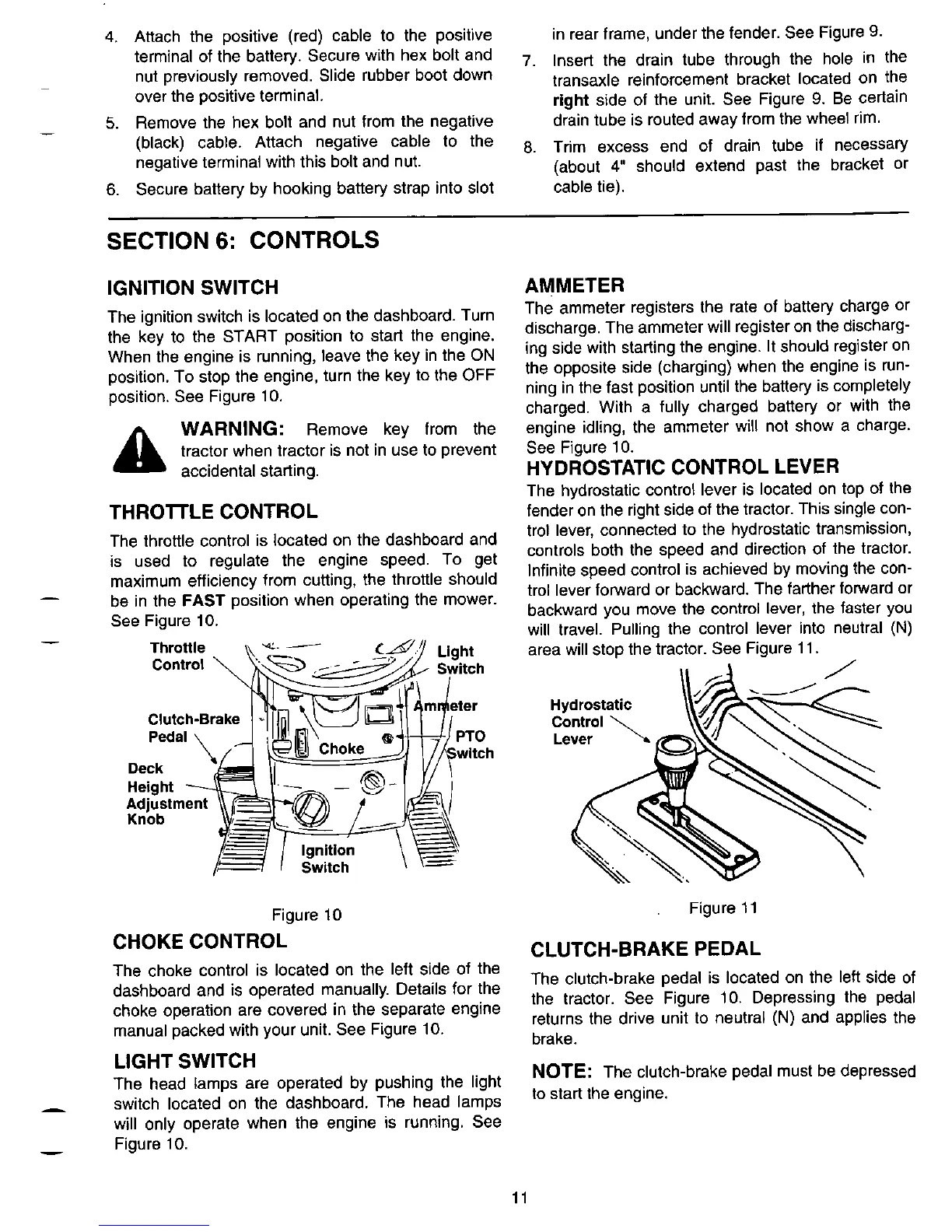 White LT-185 - Controls Overview; Ignition Switch Operation; Throttle Control Operation; Choke Control Operation