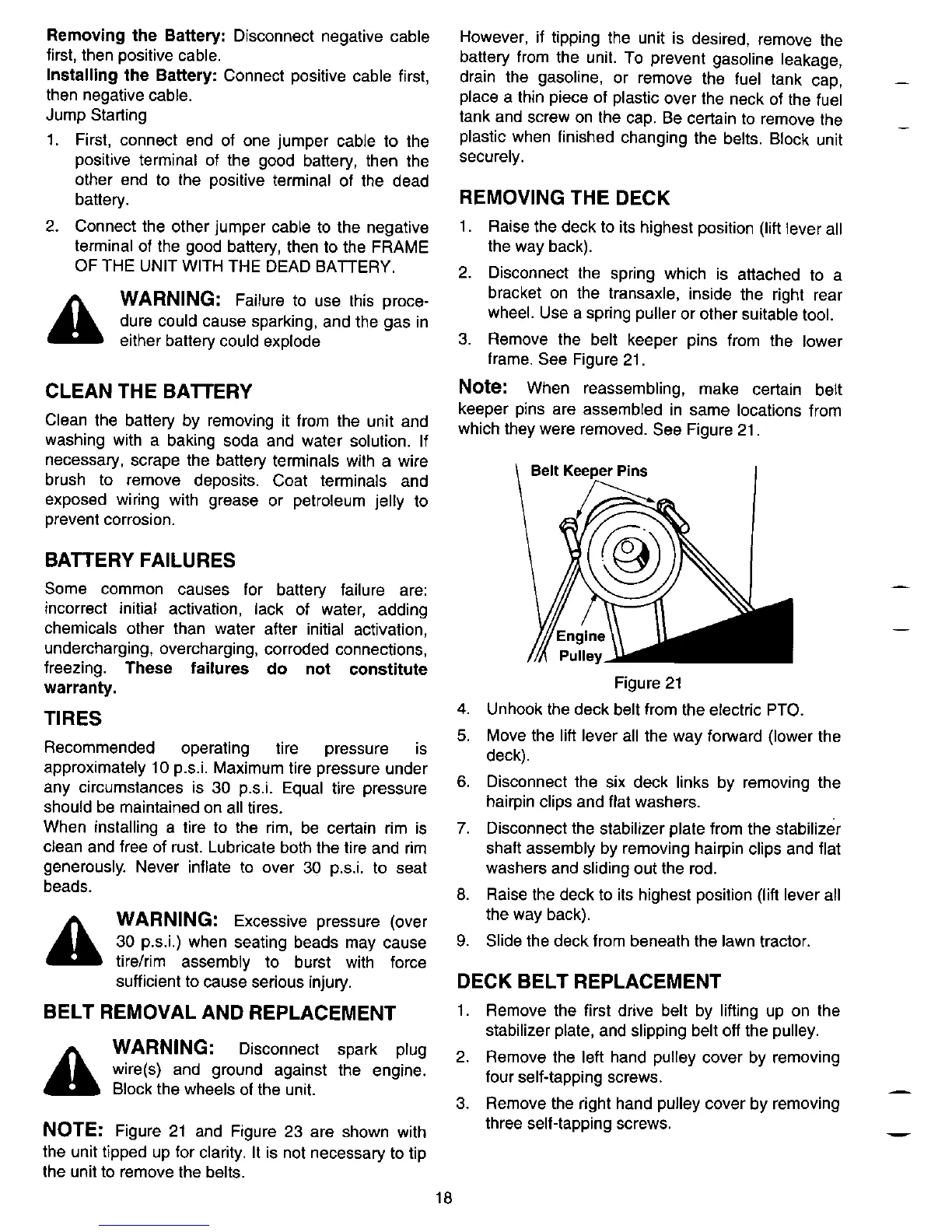 White LT-185 - Belt Removal and Replacement; Deck Removal Procedure; Deck Belt Replacement Procedure