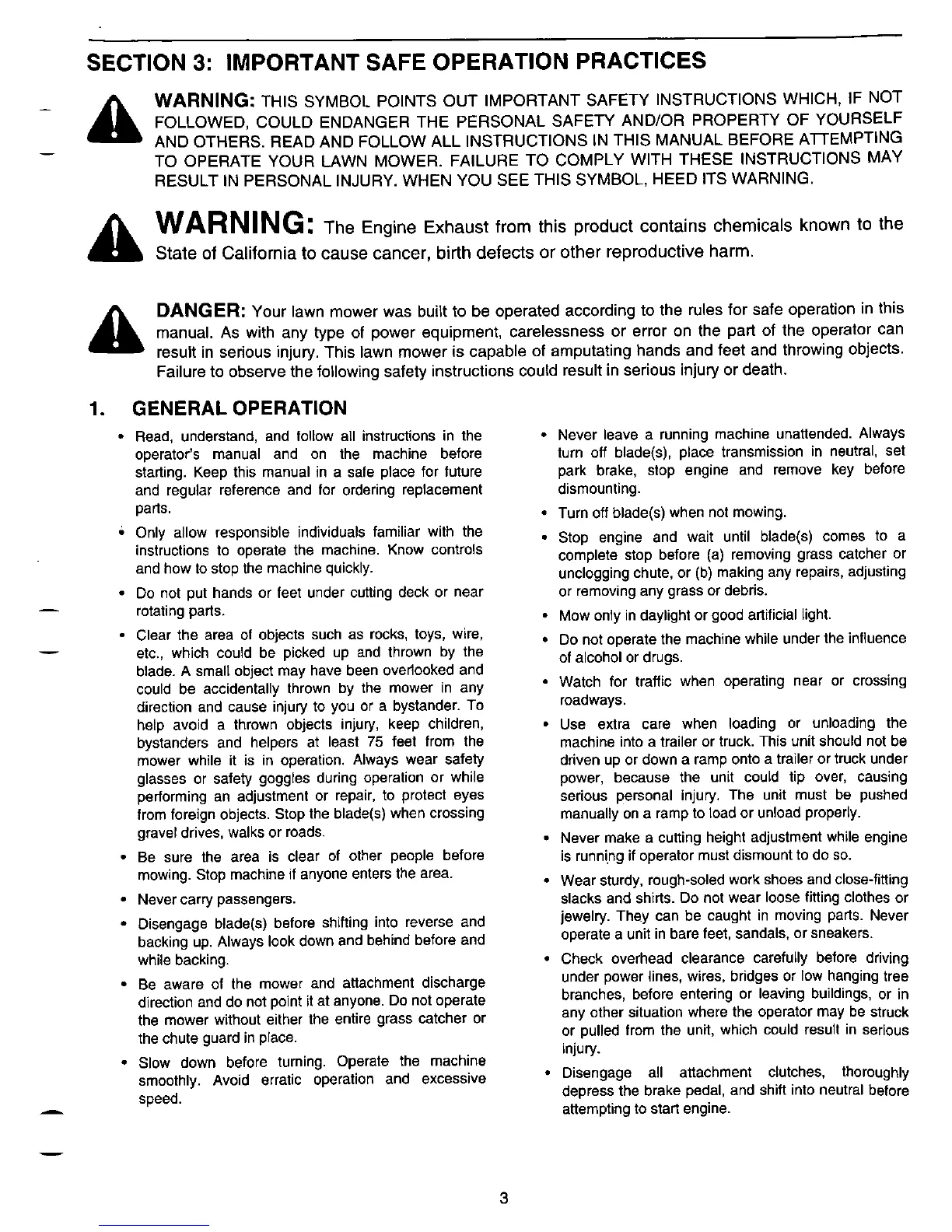 White LT-185 - Important Safe Operation Practices; General Operation Safety Guidelines
