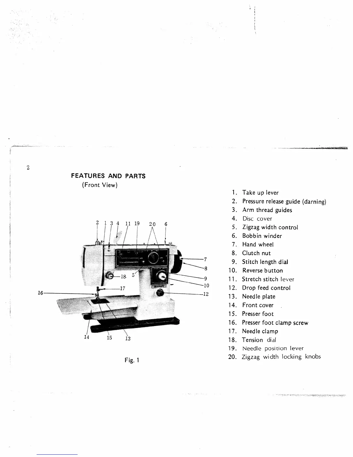 White S-9000AAB - FEATURES AND PARTS (Front View)