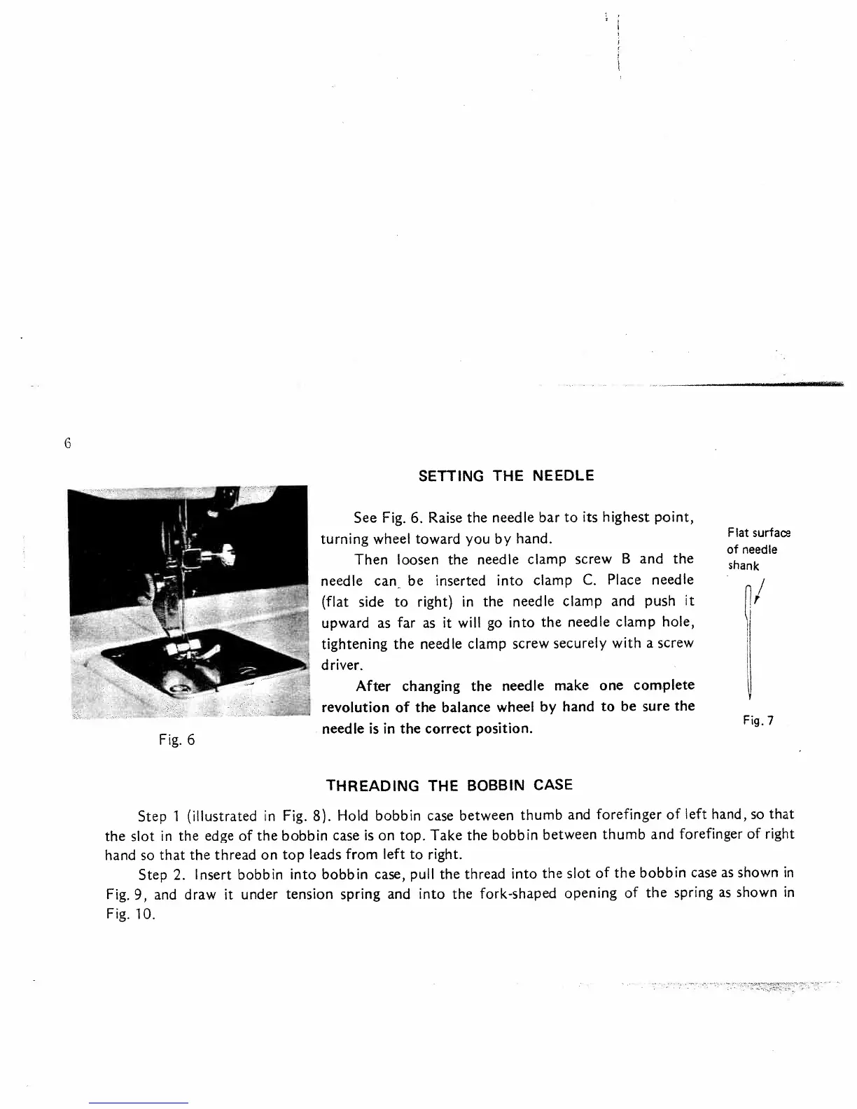 White S-9000AAB - SETTING THE NEEDLE; THREADING THE BOBBIN CASE