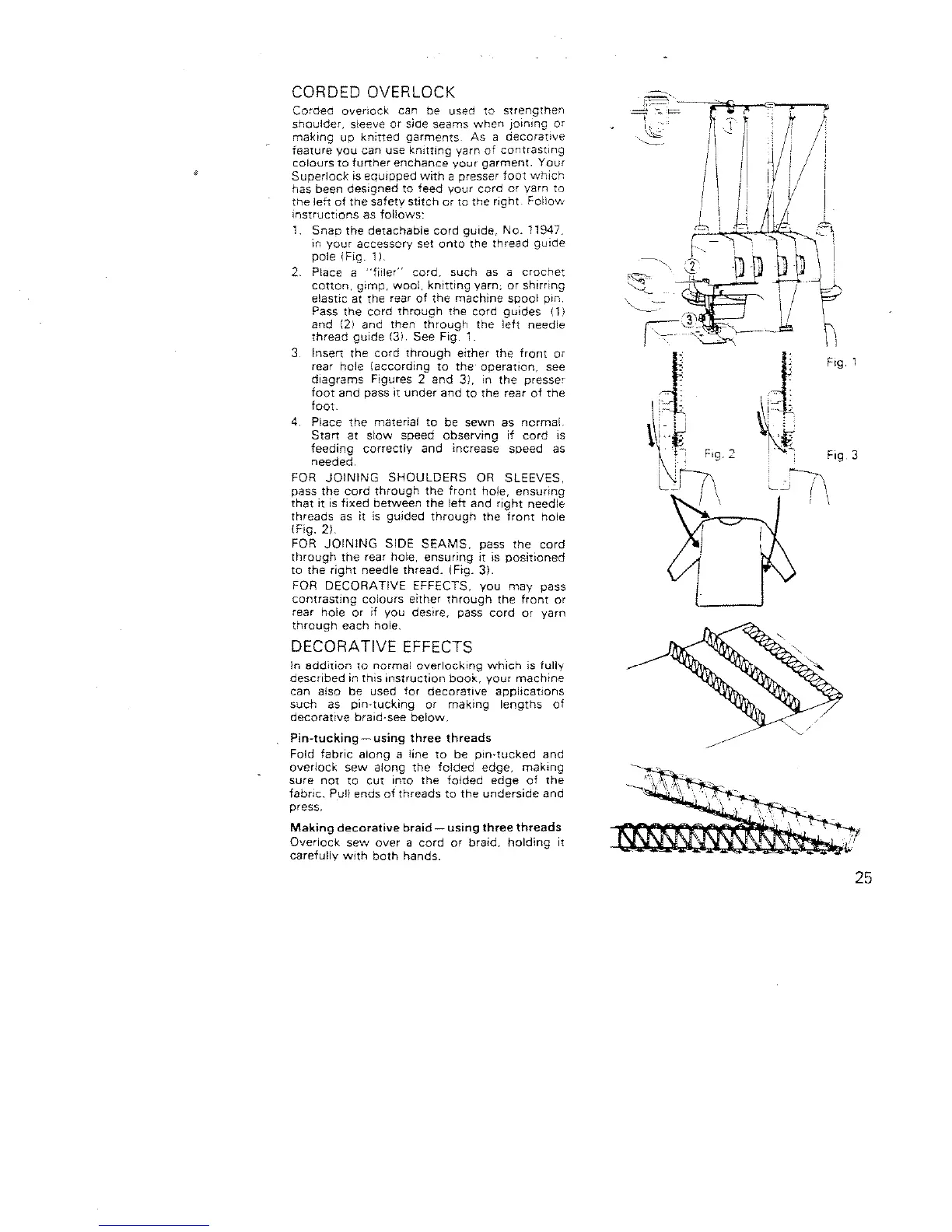 White Super Lock 734 - Corded Overlock; Decorative Effects; Pin-Tucking-Using Three Threads; Making Decorative Braid-Using Three Threads