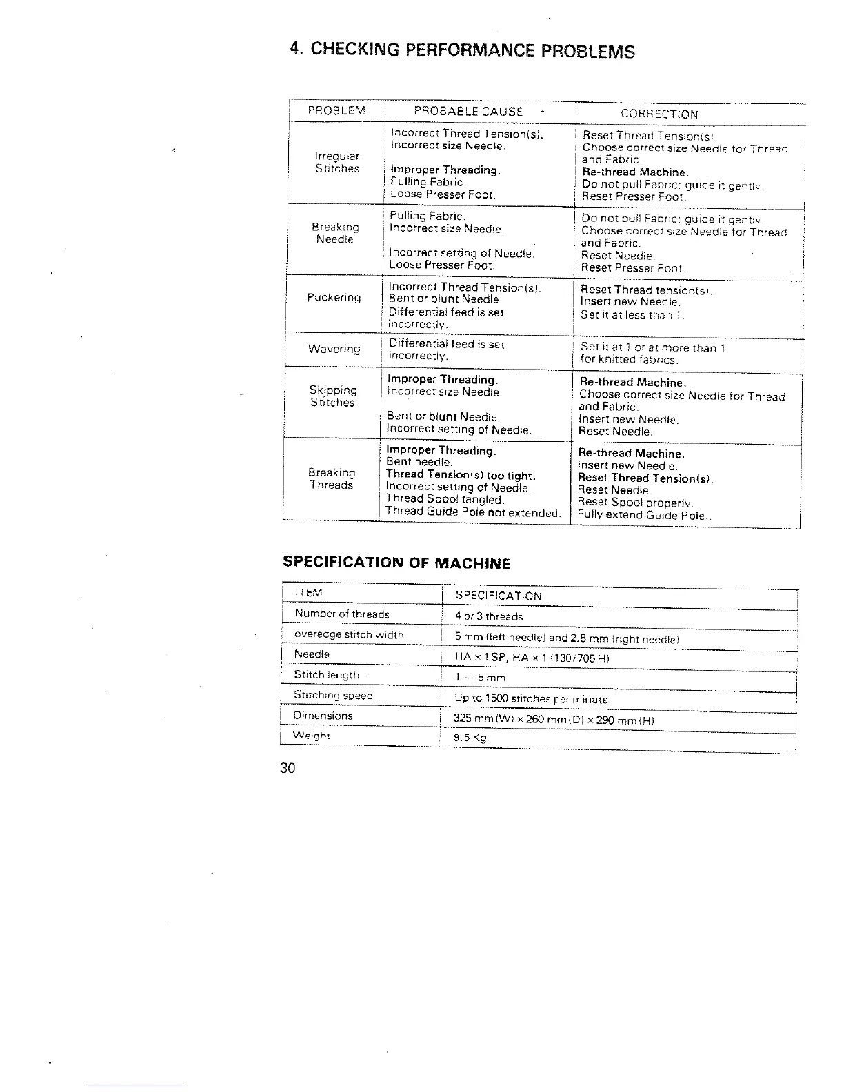 White Super Lock 734 - 4. CHECKING PERFORMANCE PROBLEMS; Troubleshooting Guide