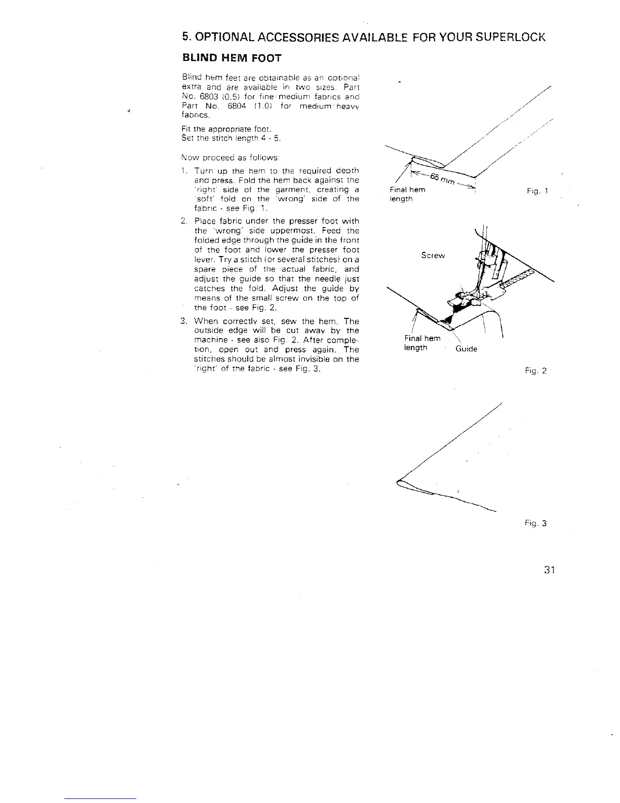 White Super Lock 734 - Optional Accessories Available for Your Superlock; Blind Hem Foot