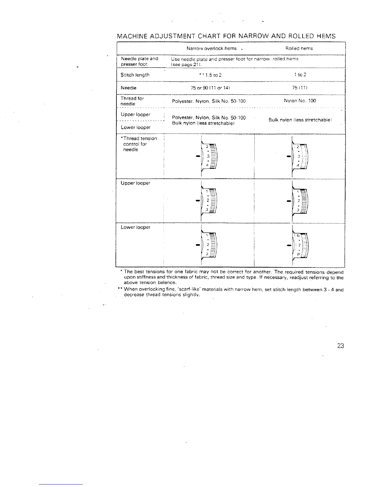 White Super Lock 734D - Narrow and Rolled Hem Adjustments