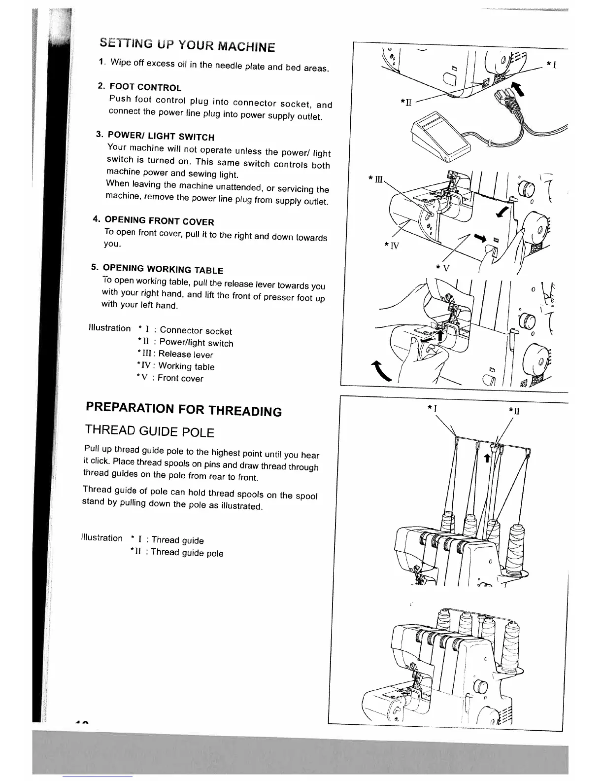 White W2500 Superlock - SETTING UP YOUR MACHINE; FOOT CONTROL; POWER; LIGHT SWITCH