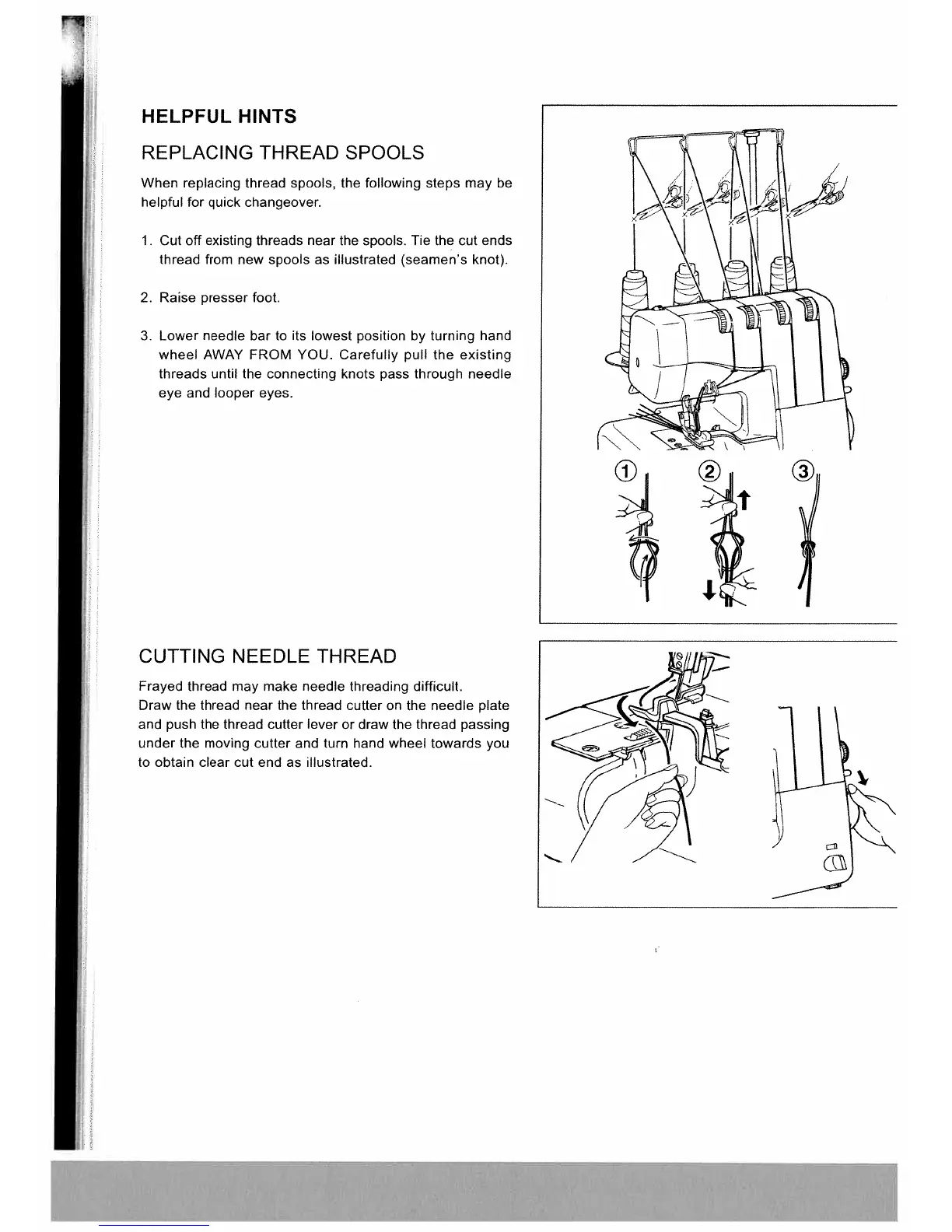 White W2500 Superlock - Helpful Hints; Replacing Thread Spools; Cutting Needle Thread