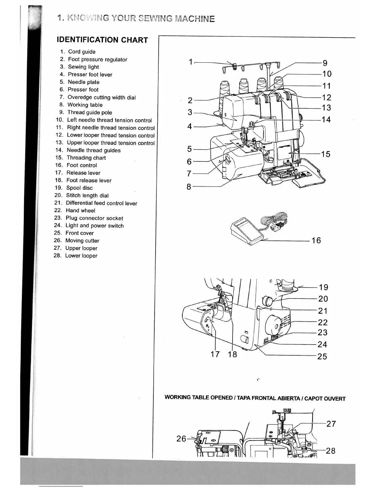 White W2500 Superlock - Knowing Your Sewing Machine; Identification Chart