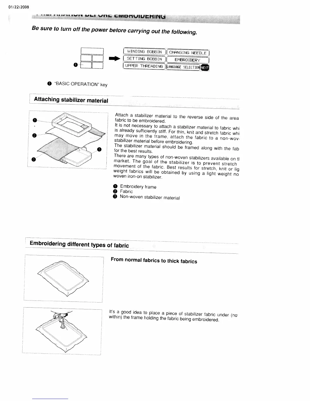 White W3300 - Preparation Before Embroidering; Attaching Stabilizer Material