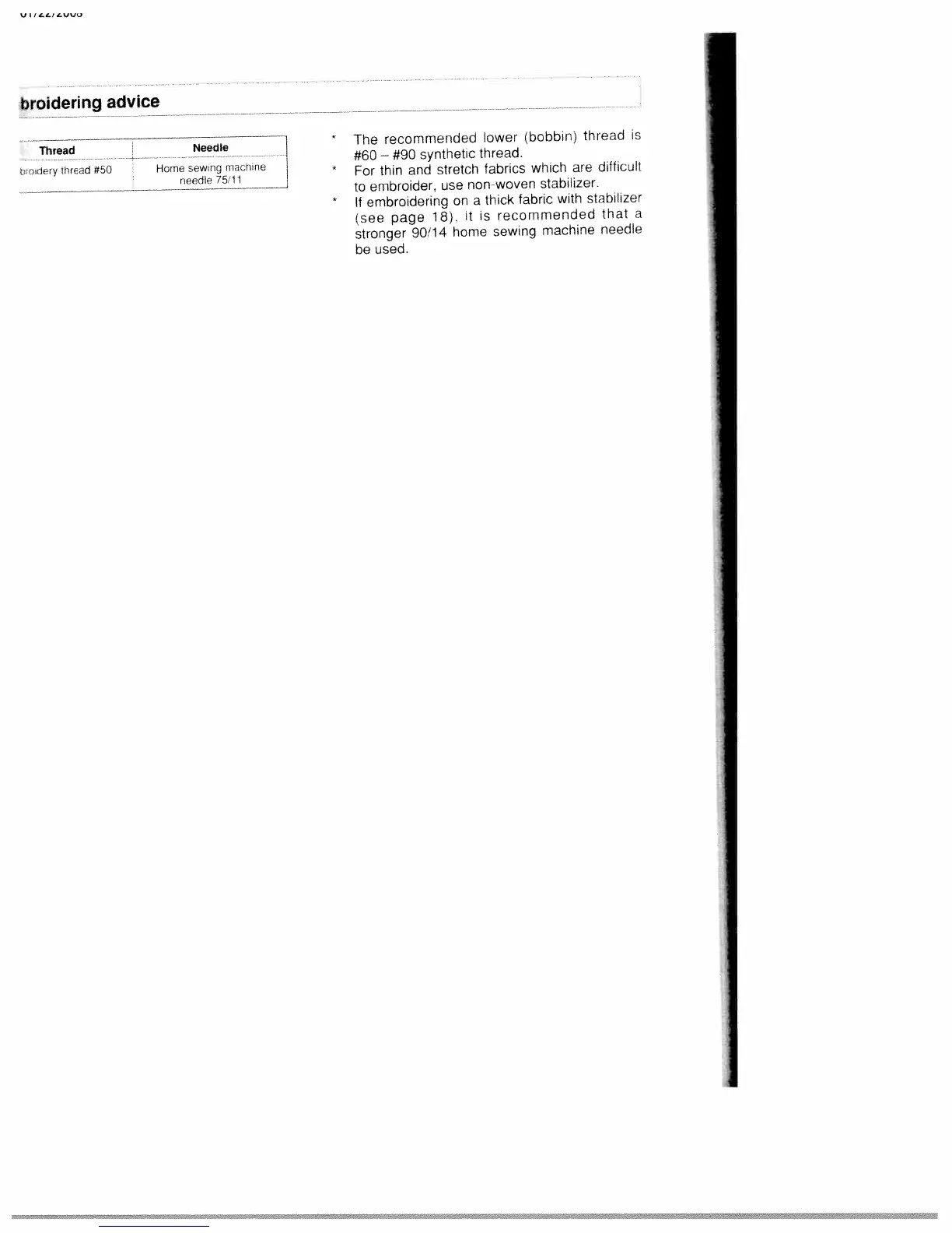 White W3300 - Embroidering Advice; Recommended Thread and Needle