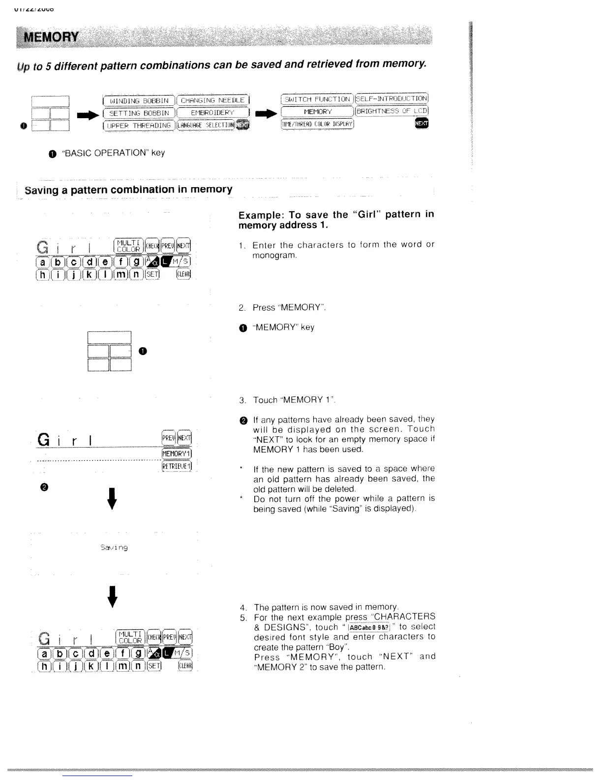 White W3300 - Memory Management; Saving a Pattern Combination in Memory