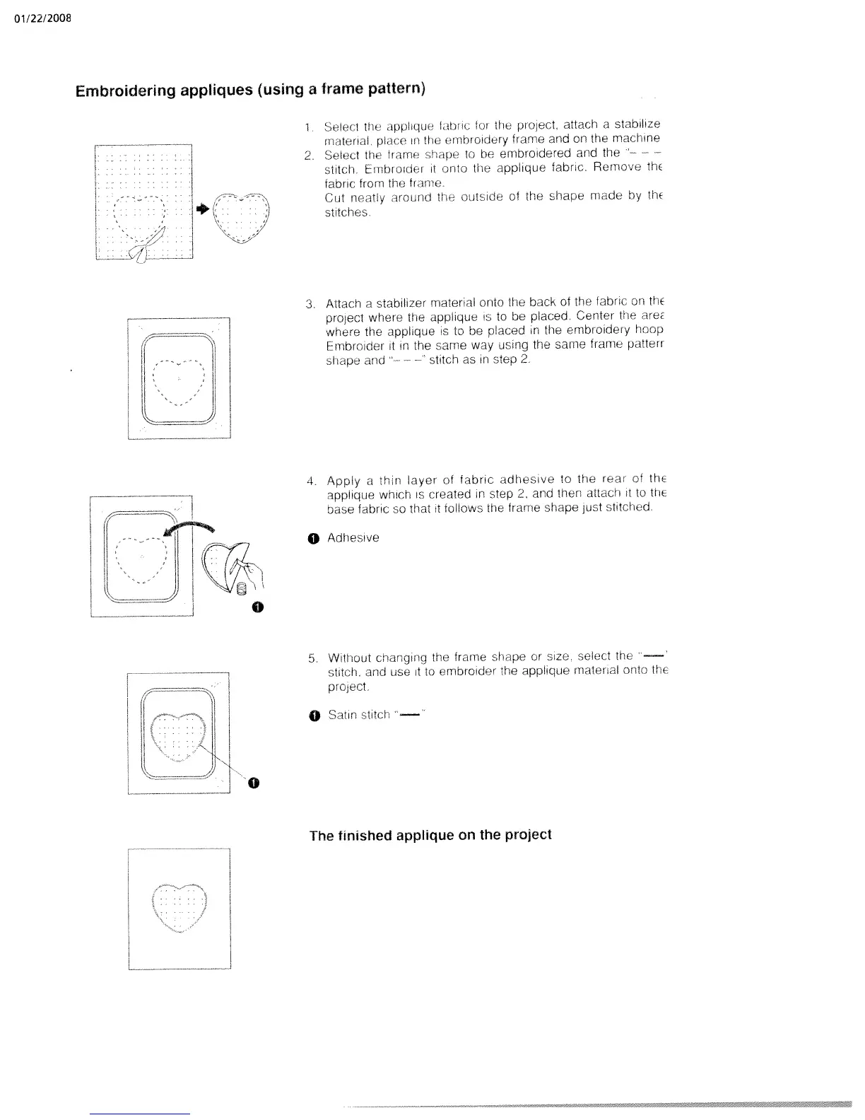 White W3300 - Embroidering Appliques (Using a Frame Pattern); Select Applique Fabric and Stitch; Attach Applique to Base Fabric