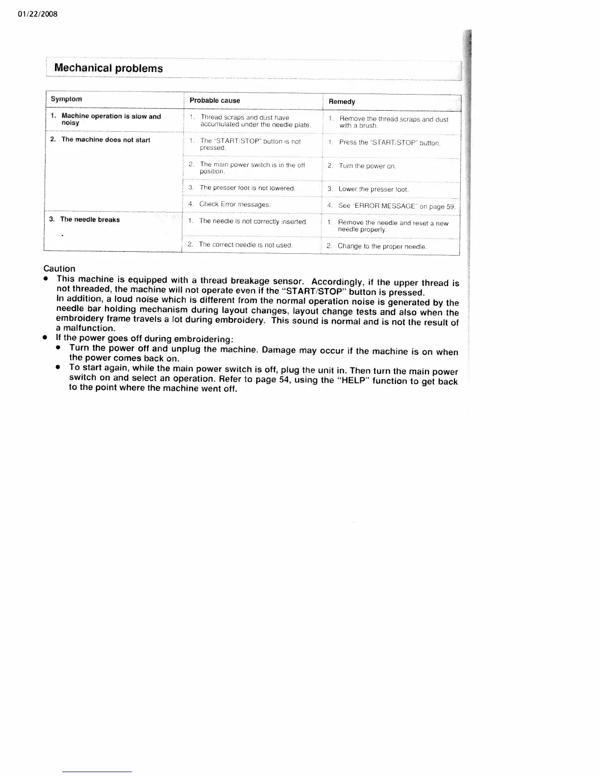 White W3300 - Mechanical Problems; Slow and Noisy Operation; Machine Does Not Start; Needle Breaks