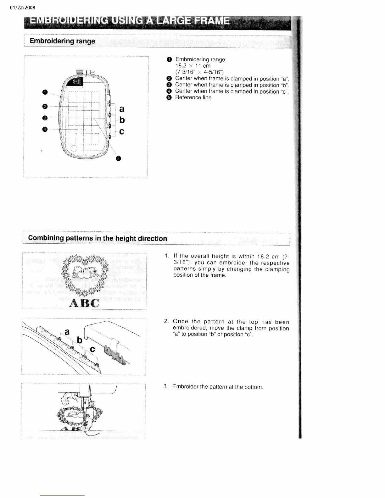 White W3300 - Embroidering Using a Large Frame; Embroidering Range; Combining Patterns in Height Direction