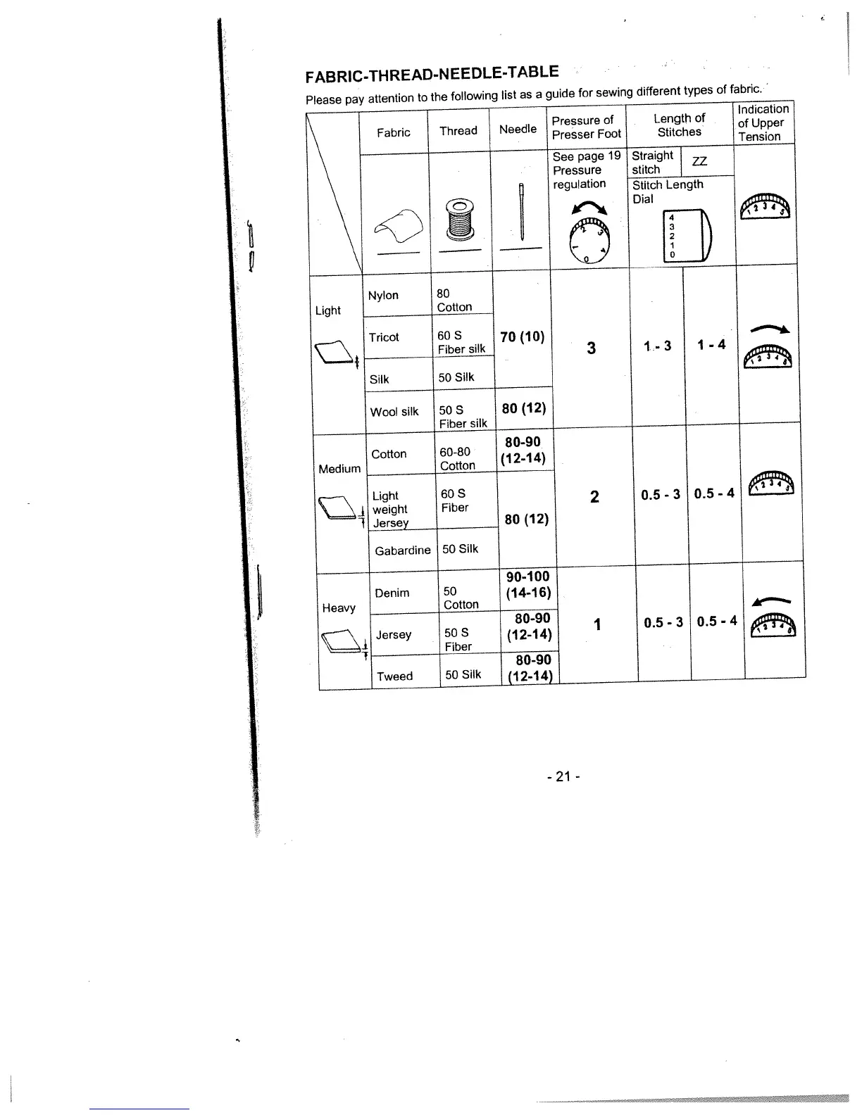 White W445 - Sewing Techniques and Guides; Fabric and Stitch Selection Guide