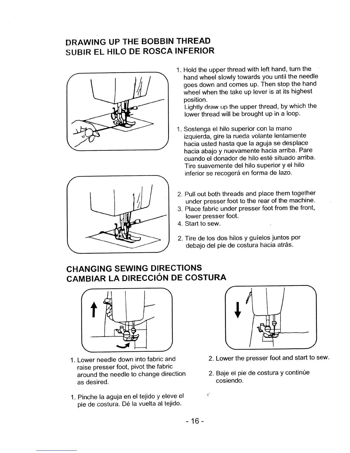 White w450 - Drawing Up the Bobbin Thread; Changing Sewing Directions