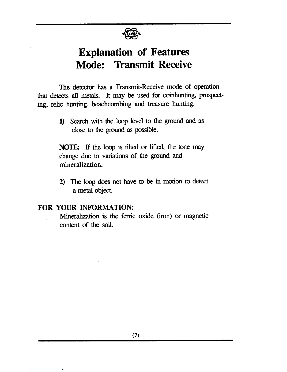 White’s Electronics Coinmaster classic - Features Explanation; Transmit-Receive Mode Operation