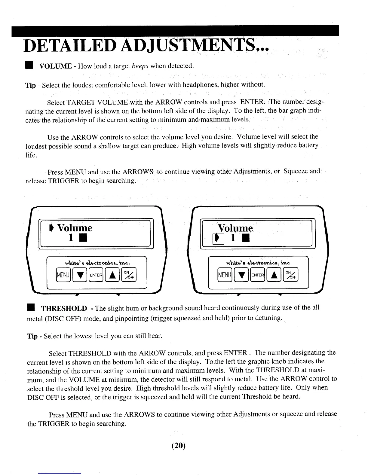 White’s Electronics Quantum II - Detailed Adjustments; Volume; Threshold