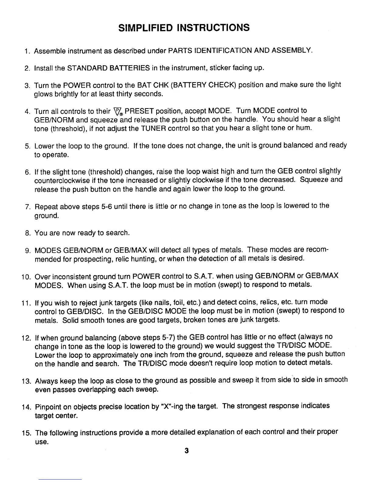 Whites 4900/D PRO PLUS - Simplified Instructions
