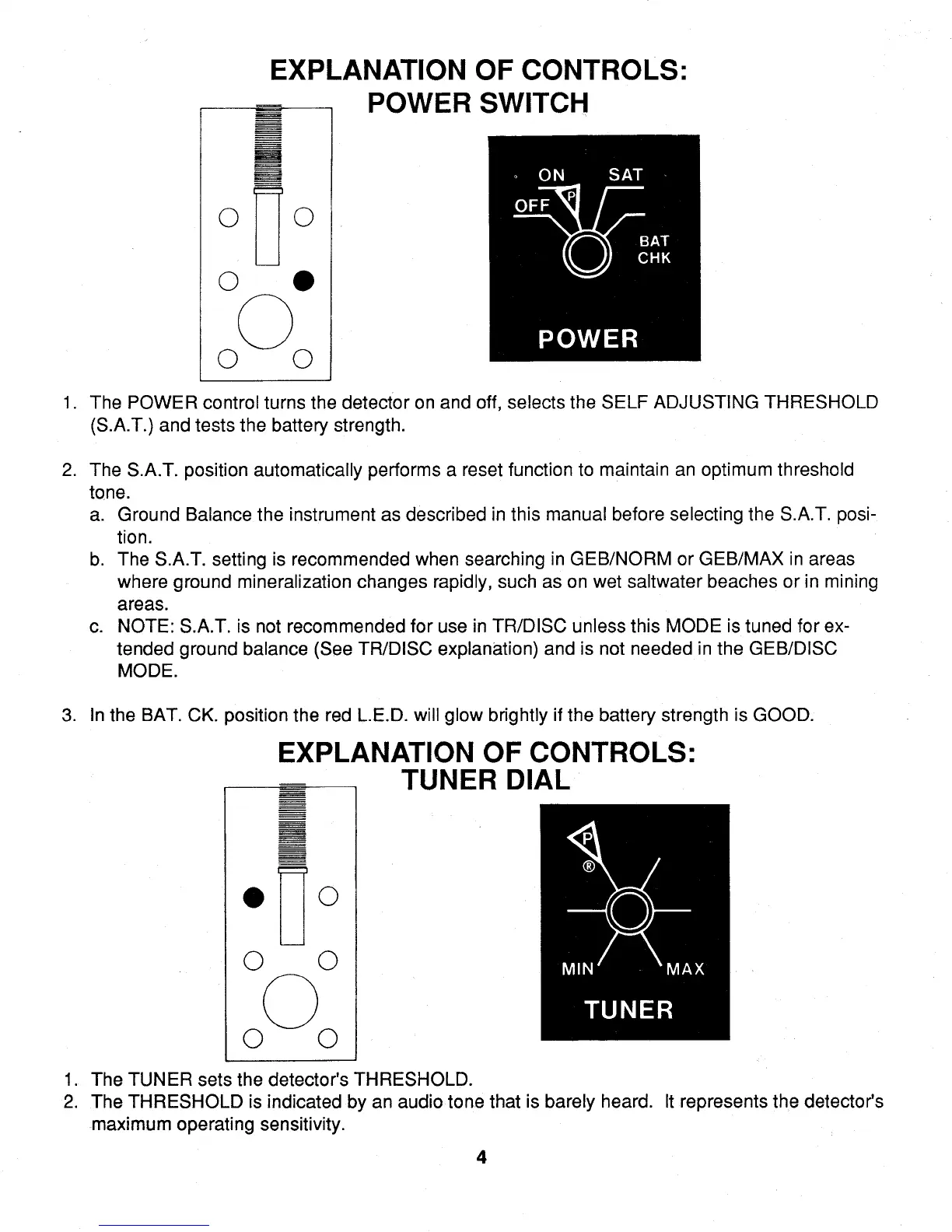 Whites 4900/D PRO PLUS - Power Switch and Tuner Dial; Power Switch Operation; Tuner Dial Adjustment