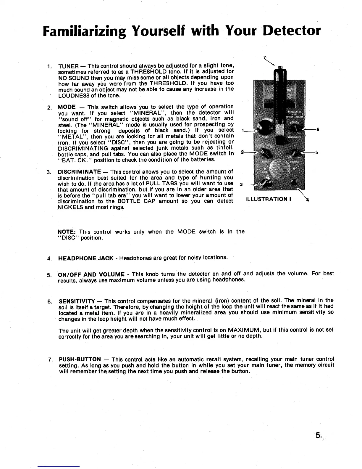 Whites Coinmaster 4/DB - Understanding Detector Controls; Tuner Control; Mode Selection Switch; Discriminate Control
