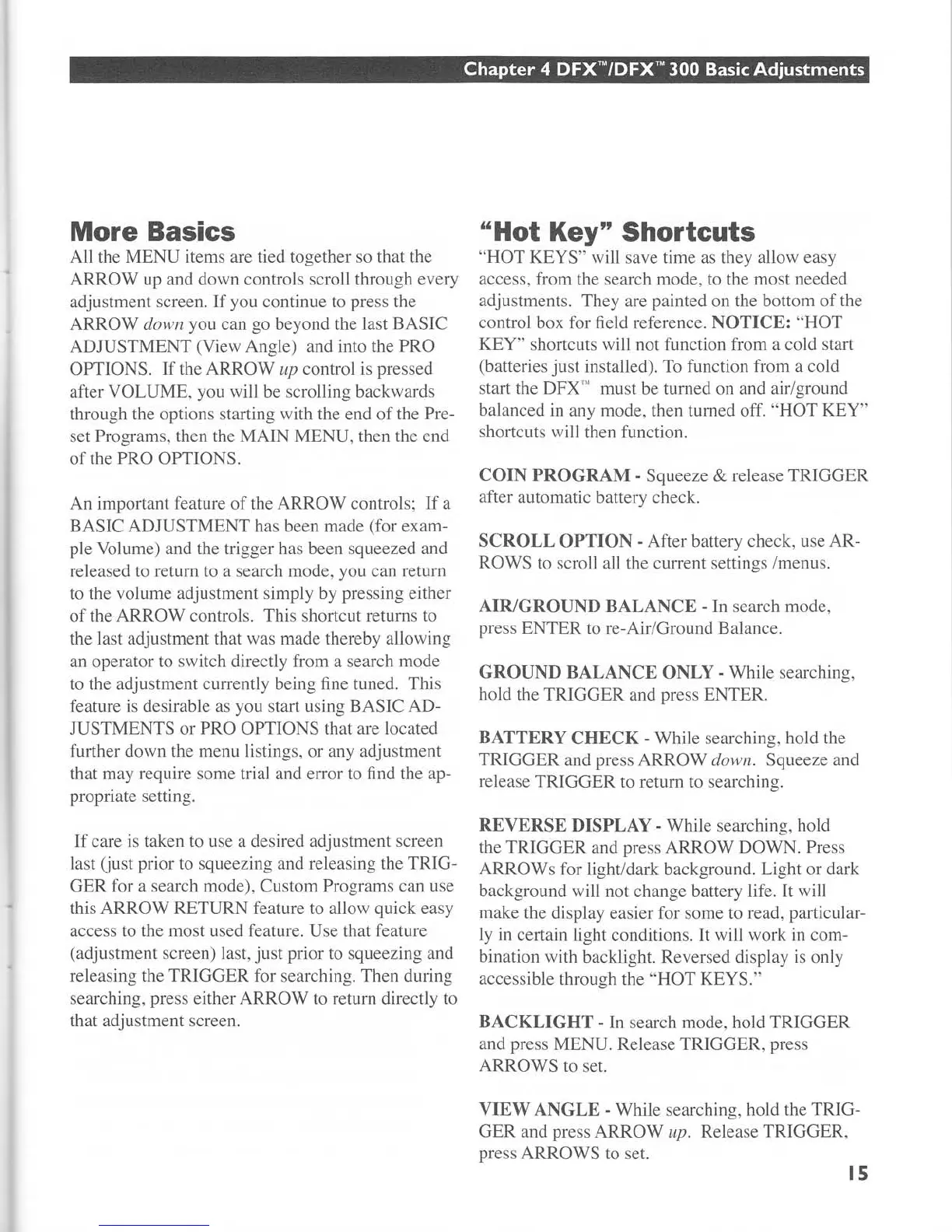 Whites DFX - More Basics; Hot Key Shortcuts