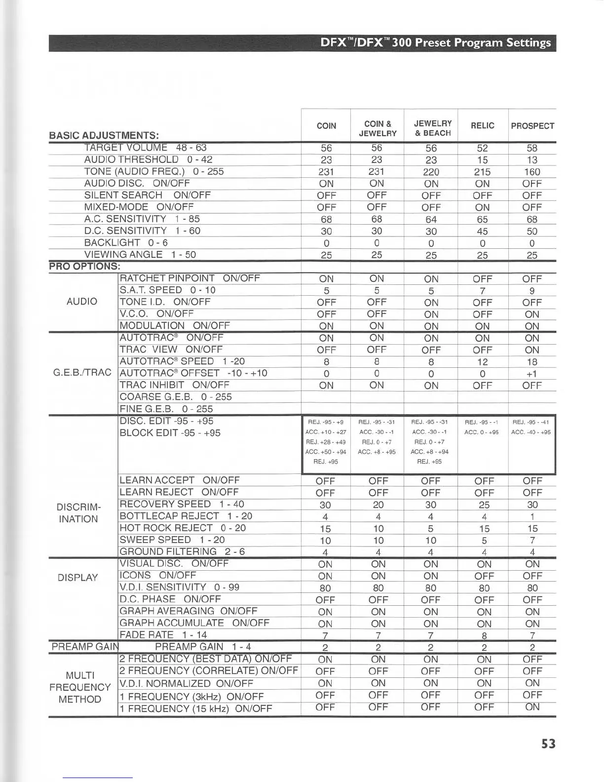 Whites DFX - DFX;DFX 300 Preset Program Settings