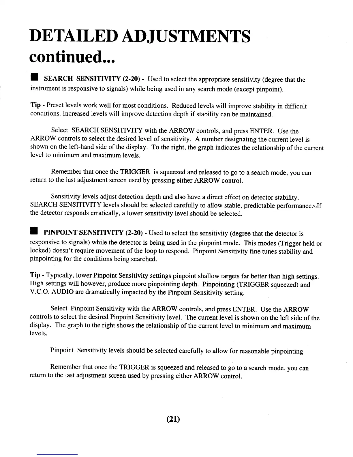 Whites Quantum XT - Search Sensitivity; Pinpoint Sensitivity