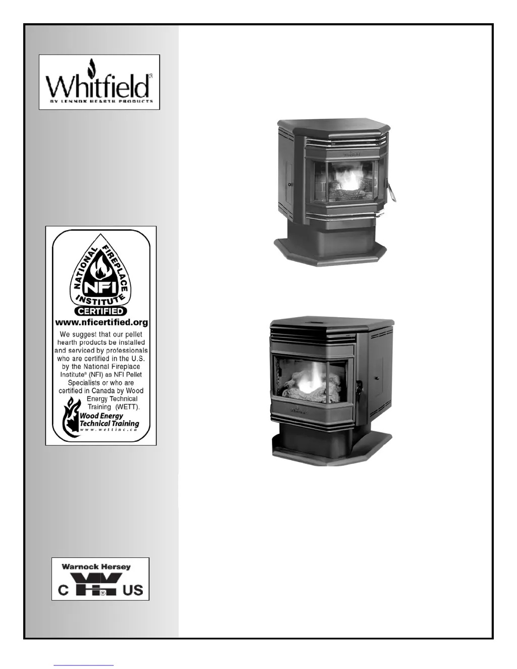 A lazy orange flame and excessive soot in your Whitfield Stove are often due to insufficient combustion air. This can be caused by a lack of maintenance. Try cleaning the Ultragrate, clean-out ports, exhaust flow passages, venting system, and exhaust blower intake. Remove any clinkers or ash from the bottom of the Ultragrate that might be obstructing the primary air holes. Check that the heat exchange tubes are not coated with ash. Clean internal exhaust ducts. Also, inspect the door and ashpan gaskets, air inlet tube, and exhaust pipe for blockages or damage. The fuel trim may need adjustment, or a better grade of fuel may be necessary. Ensure the damper is open enough for the fuel amount. If problems persist, have your authorized Lennox Hearth Products dealer check your exhaust blower.