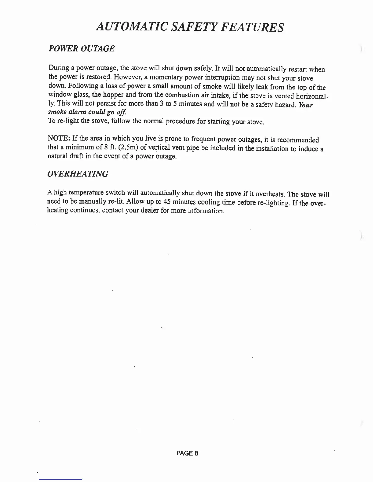 Whitfield Cascade - Automatic Safety Features; Power Outage; Overheating