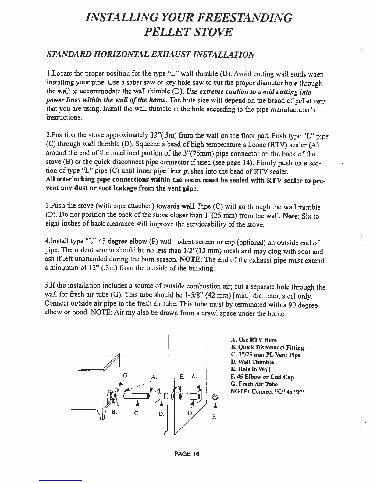 Whitfield Cascade - Installing Your Freestanding Pellet Stove; Standard Horizontal Exhaust Installation