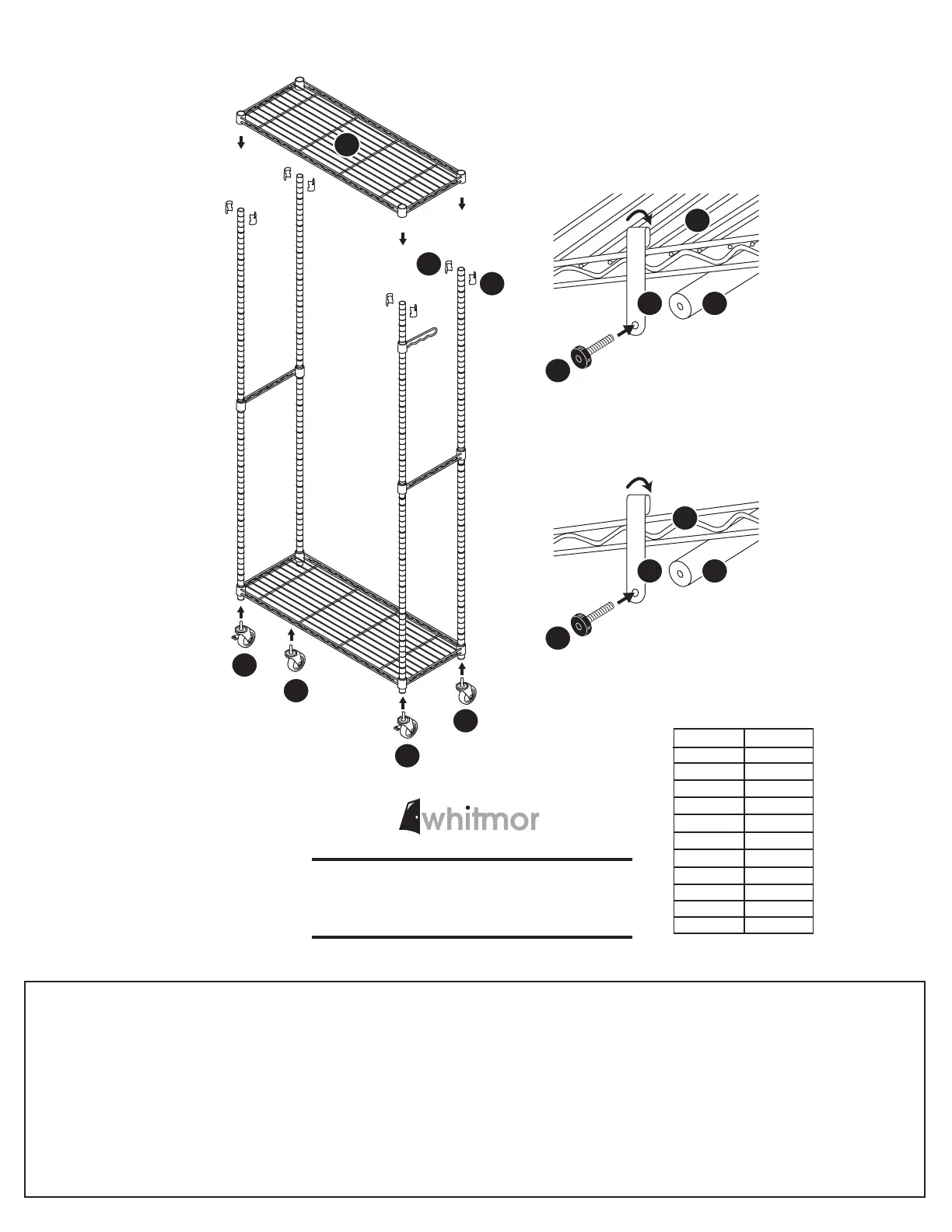 please call Whitmor’s Customer Service Department, 1-888-944-8667