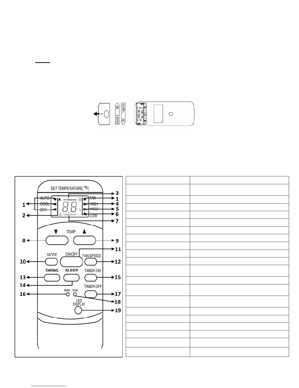 17 – Timer Off Button Enables the Off timer & set timer hours